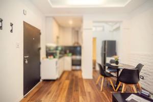 Die Unterkunft umfasst zwei separate Schlafzimmer sowie ein Wohnzimmer und ein Badezimmer mit Badewanne, Bidet, Haartrockner und kostenlosen Pflegeprodukten inklusive Shampoo, Conditioner und Duschgel. Die voll ausgestattete Küche beinhaltet einen Ofen, Herdplatte, Kühlschrank sowie eine Kaffeemaschine mit Tee- und Kaffeezubehör, Küchenutensilien sind ebenfalls vorhanden. Zu den weiteren Annehmlichkeiten zählen individuell regulierbare Klimaanlagen pro Zimmereinheit sowie Heizung. Der Fußboden besteht aus Parkett bzw. Holz, der Wohnbereich ist mit Schlafsofas möbliert.