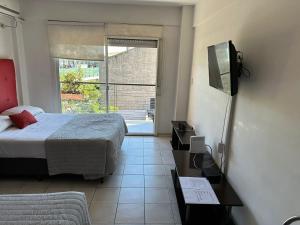 Located just 2 km from Plaza Serrano Square, alquiler departamento por dia av Corrientes a pasos movistar arena y rural offers a spacious apartment with city views and a rooftop pool. This single-room accommodation features four beds and includes free WiFi throughout the property as well as parking facilities.