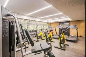 Additional amenities include free WiFi available throughout the property and internet access in all areas. The bathroom comes with shampoo and hairdryer provided for guest convenience. Outdoor spaces include a garden patio where guests can relax after enjoying the swimming pool on the rooftop or working out in the fitness centre.
