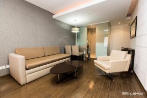 Accommodations feature individually controlled air conditioning and hardwood flooring throughout. Each unit has a fully equipped kitchen or kitchenette including an oven, stovetop, refrigerator, microwave, toaster, coffee machine and electric kettle alongside kitchenware and dining table. Rooms include seating areas with sofas or sofa beds plus work desks, the bedrooms offer two beds with options for rollaway beds or baby cots upon request. Private bathrooms contain bathtubs or showers along with complimentary toiletries such as shampoo, conditioner, body soap, bidet facilities and hairdryers.