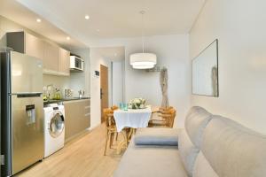 The studio features one bed along with air conditioning and heating for comfort throughout your stay. Guests will find a fully equipped kitchen including a refrigerator, microwave, toaster, coffee machine, electric kettle, kitchenware and dining table. Additional in-room amenities include a washing machine, sofa bed, wardrobe or closet, safety deposit box, non-feather synthetic pillows and towels. The private bathroom comes complete with a bathtub or shower, bidet, complimentary toiletries such as shampoo and conditioner plus a hairdryer.
