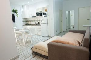 The air-conditioned accommodation features a fully equipped kitchen with an oven, stovetop, refrigerator, microwave, coffee machine, toaster and electric kettle alongside kitchenware for preparing meals. Guests can enjoy a living area furnished with a sofa bed and sofa plus a dining table for mealtimes. The unit also includes wardrobe space, heating and cooling systems such as air conditioning along with synthetic non-feather pillows on tiled or marble flooring.